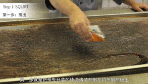 如下圖所見,只需要短短數(shù)分鐘時(shí)間,廚師便能快速解決鐵板的清潔問題。