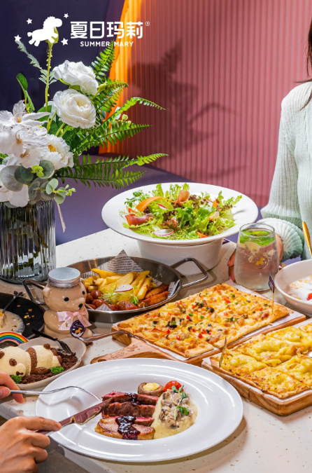 作為注重創(chuàng)新與享受的西餐廳,憑借著高品質(zhì)和高性價(jià)比,夏日瑪莉在近年飛速發(fā)展,尤其受到了許多家庭型消費(fèi)者的追捧和喜愛。當(dāng)你走在商場(chǎng)中,一定會(huì)被夏日瑪莉夢(mèng)幻的童話空間所吸引,柔和的色彩搭配,粉紫夢(mèng)幻,星空絢爛,綠意花開,邂逅門店就如同打開一篇精彩的都市成人童話。