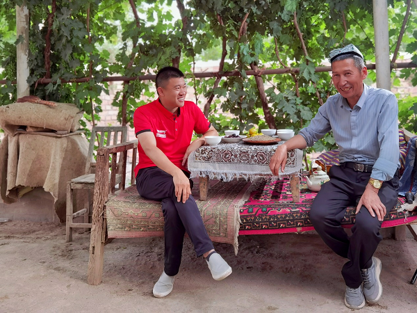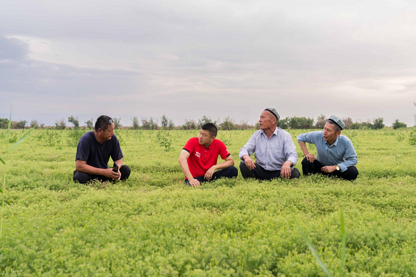 在與當(dāng)?shù)剞r(nóng)戶(hù)親切交流之后,管氏翅吧創(chuàng)始人管其兵深入田埂,在一株株孜然植株間考察當(dāng)季孜然的產(chǎn)新情況。5月底的孜然種子呈現(xiàn)嫩綠色,粒粒飽滿(mǎn),散發(fā)著獨(dú)特的香氣。管其兵輕撫著孜然植株嫩綠色的葉片,并不斷詢(xún)問(wèn)關(guān)于孜然生長(zhǎng)情況的細(xì)節(jié)。“往年這時(shí)候已經(jīng)在收割了。”當(dāng)?shù)剞r(nóng)戶(hù)依力哈木大叔向他介紹到,“今年閏二月,孜然生長(zhǎng)期延遲,長(zhǎng)勢(shì)也更加喜人,估計(jì)今年是個(gè)好收成!”言語(yǔ)之間,依力哈木大叔臉上泛出淳樸而快樂(lè)的笑容。