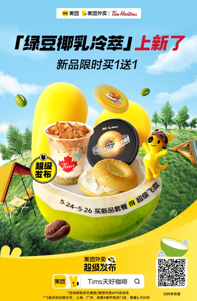 為此,咖啡品牌Tims與美團(tuán)外賣一起,深度洞察年輕消費(fèi)者的全新生活方式,合作推出了“超級發(fā)布”專場活動。清涼解暑的新品咖啡、一見傾心的“貝果”飛盤、紛至沓來的抽獎送聯(lián)名周邊,讓年輕人的生活時刻充滿向上情緒和滿滿驚喜,得到了他們的更多認(rèn)同。