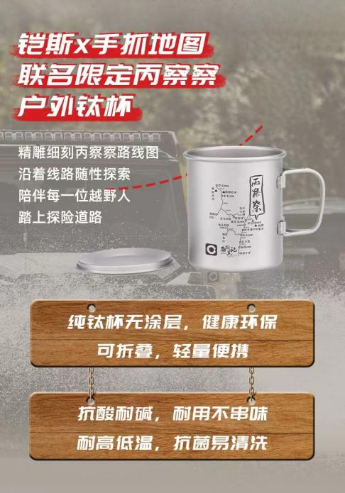 KEITH鎧斯與手抓地圖共同推出丙察察地圖聯(lián)名鈦杯。走最爛的路、看最美的風(fēng)景。以第七條著名進(jìn)藏線路—丙察察線路圖作為篆刻圖案。