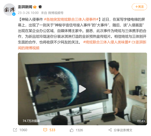 整體回顧近幾個月冰淇淋類產(chǎn)品在各類媒體上發(fā)布的信息,可以發(fā)現(xiàn),綺炫上市以來通過大屏、梯媒等戶外媒體結(jié)合主流長、短視頻平臺全面覆蓋了目標(biāo)消費者的衣食住行。在此基礎(chǔ)上,綺炫跨界小米、聯(lián)動三體IP、聯(lián)合當(dāng)紅明星宋軼開啟“打卡愛麗絲最愛冰淇淋”等創(chuàng)意豐富的打卡活動,讓品牌影響力滲透不同圈層。在小紅書上,綺炫身影也經(jīng)常出現(xiàn),在淄博燒烤、520等時間節(jié)點和熱點事件期間通過KOC與消費者積極互動,推動種草效果的社交裂變。系列活動總曝光量超過3.7億次,并沉淀了大量優(yōu)質(zhì)原創(chuàng)筆記,形成傳播長尾。