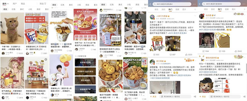 除新品以外,活動(dòng)還推出美團(tuán)外賣與肯德基聯(lián)合定制的“8周年紀(jì)念桶周邊”。周邊以高顏值、高實(shí)用性強(qiáng)勢(shì)出圈,用高顏值和意外的“反差萌”,撬動(dòng)各圈層;而其本身自帶的“歐氣”玩法,符合近幾年頗受年輕人熱愛的“抽卡”、“玄學(xué)”、“盲盒”理念,切中年輕人興趣點(diǎn)。同時(shí),美團(tuán)外賣聯(lián)合小紅書、微博平臺(tái)上不同領(lǐng)域博主,以周邊為核心物料,輻射顏值、生活、郊游、萌寵、手工、手作等多個(gè)圈層,成功打造多個(gè)爆款筆記,引發(fā)粉絲打卡熱潮,成功吸引一波網(wǎng)友自來水傳播以及對(duì)周邊“全網(wǎng)求桶”的追捧。