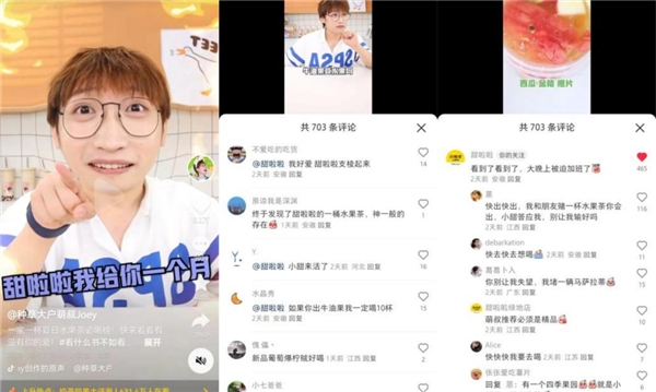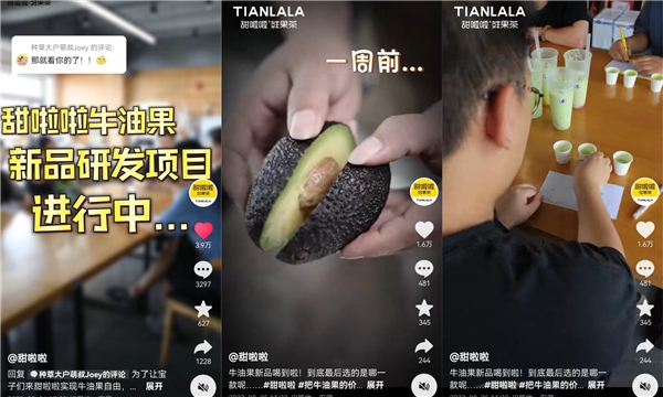 甜啦啦關(guān)注響應(yīng)并啟動(dòng)牛油果新品研發(fā),8月14日甜啦啦釋出第一條回應(yīng),立下“一個(gè)月時(shí)間,打下牛油果飲品價(jià)格”的軍令狀。隨后從牛油果的選品、研發(fā)配比,到飲品測試等持續(xù)釋出研發(fā)動(dòng)態(tài)。“甜啦啦實(shí)干派!主打的就是一個(gè)聽勸”“一整個(gè)期待住!實(shí)現(xiàn)牛油果自由就靠甜啦啦了”甜啦啦的回應(yīng)與高執(zhí)行力,深受網(wǎng)友肯定。