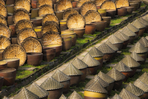 赤水河沿岸的三伏天,常年維持著恒溫與 75% 以上的濕度,這種獨特的氣候條件,恰是微生物發(fā)酵的黃金參數(shù)。45 度斜坡上的數(shù)千口陶缸,并非隨意擺放 —— 傾斜角度能讓每缸原料均勻接受日照,陶土的透氣特性則能調(diào)節(jié)缸內(nèi)濕度,形成天然的 "發(fā)酵實驗室"。當(dāng)?shù)貙嶒炇覚z測數(shù)據(jù)顯示,這里的菌群經(jīng)過百年馴化,已形成穩(wěn)定的微生物群落,在三伏天的旺盛代謝中,能將黃豆蛋白分解為 18 種氨基酸,其中鮮味氨基酸占比高達 42%,這正是鮮味的核心來源。