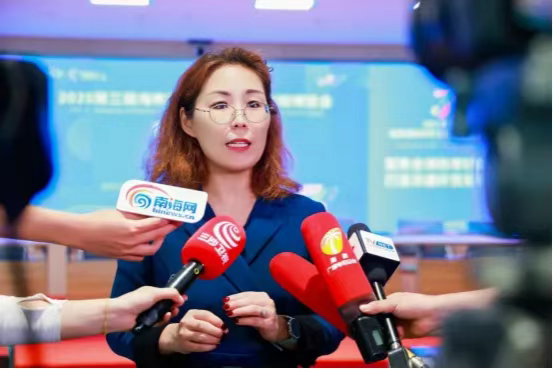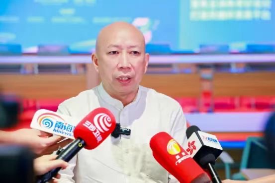 發(fā)布會現(xiàn)場,海南省食品生產(chǎn)與流通協(xié)會執(zhí)行副會長兼秘書長唐潔春接受媒體采訪