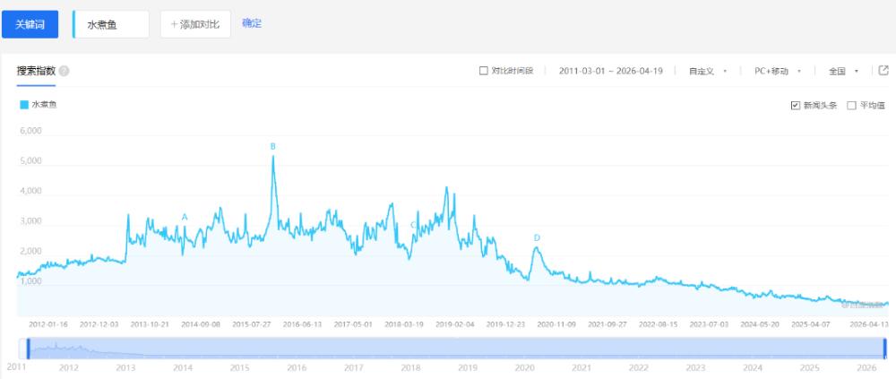 百度指數(shù)顯示,水煮魚近些年的搜索熱度幾乎在逐年下降。水煮魚作為大單品,其早期走紅可以追溯到千禧年前后。在當(dāng)年那社交媒體并沒有如此發(fā)達(dá)的背景下,北京一家小店因?yàn)檫@道菜火爆到讓整條巷子出現(xiàn)交通堵塞。短時(shí)間內(nèi),水煮魚專門店在全國遍地開花。但如今,以它為招牌的單品店越來越少。