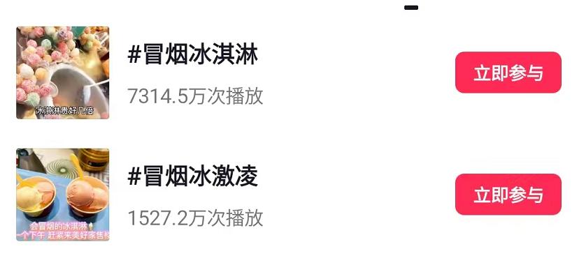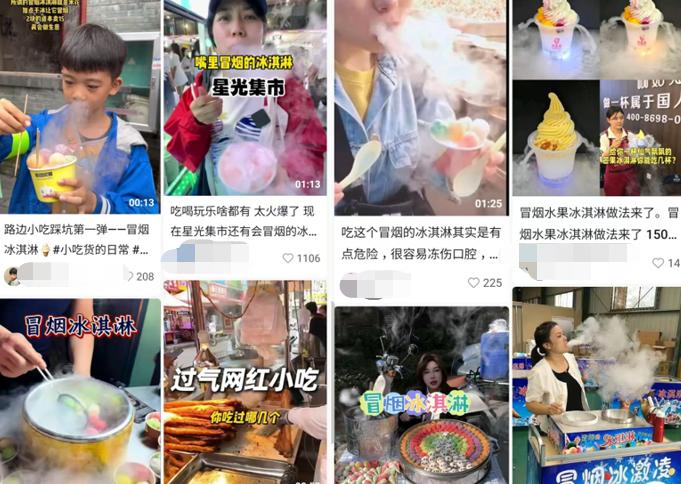 冒煙冰淇淋,端上來云霧繚繞,吃進(jìn)嘴里口鼻一起“冒煙”。就是這個(gè)視覺奇觀,當(dāng)年讓無數(shù)年輕人不惜排隊(duì)數(shù)小時(shí)打卡。得益于當(dāng)年的火爆,“冒煙冰淇淋”話題在抖音上沉淀下超過7000萬的播放量。