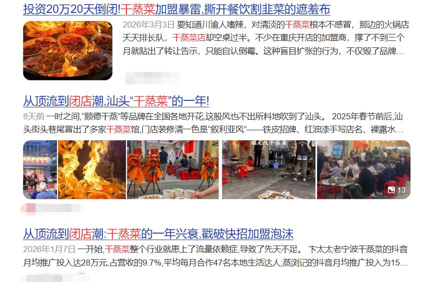 2025年初,打著“不加一滴水”“還原食材本味”旗號(hào)的干蒸菜館在全國多地涌現(xiàn),如今,社交平臺(tái)上,大量干蒸菜館門口貼上了“旺鋪轉(zhuǎn)租”的告示。小碗菜外賣同樣如此,投資門檻相對(duì)較低,適合初次創(chuàng)業(yè)者嘗試,但也意味著無數(shù)人同時(shí)涌入,競爭迅速白熱化。這些品類,不一定“難吃”,但沒有技術(shù)秘密、沒有品牌忠誠度,門檻越低的品類,越難逃內(nèi)卷的宿命