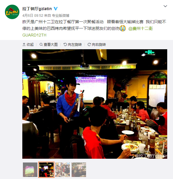 通過與廣州恒大球迷協(xié)會(huì)中最具影響力的廣州十二衛(wèi)合作,成為其官方指定用餐點(diǎn),每當(dāng)有恒大比賽的時(shí)候,組織十二衛(wèi)會(huì)員在餐廳現(xiàn)場(chǎng)看直播。