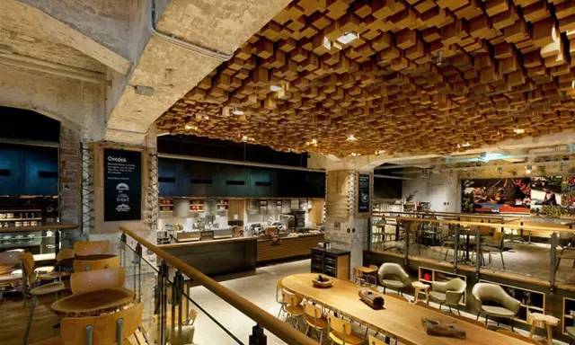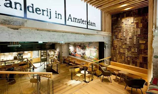 這家阿姆斯特丹概念店位于林布蘭廣場上,前身是一家銀行的金庫,4500平方英尺的設(shè)計空間,由星巴克概念設(shè)計總監(jiān)Liz Muller和35位藝術(shù)家及工匠共同完成的。