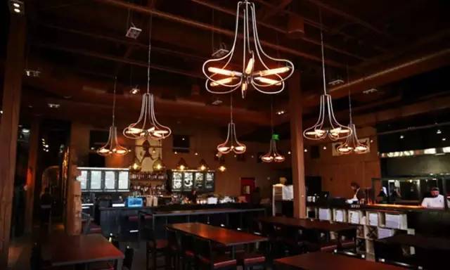 而室內(nèi)也采用大面積的木質(zhì)材料,包括柜臺、屋頂和桌椅,配合黑色金屬結(jié)構(gòu),整體氣氛較為傳統(tǒng)。