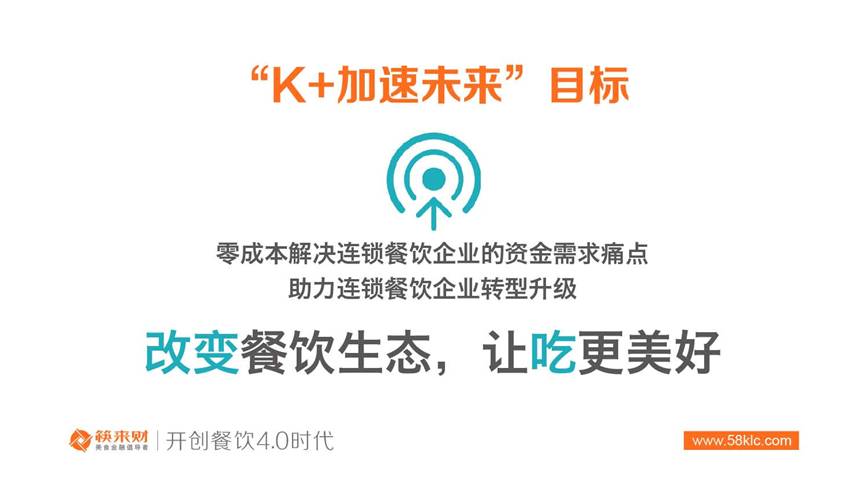 獲取“K+加速未來,連鎖餐飲企業(yè)金融助推計(jì)劃”更多信息,可微信搜索或者直接致電:13466572656。