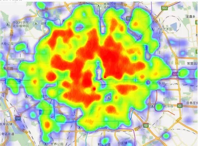 朝陽公園周邊、西直門商圈、東大橋周邊、大望路周邊的人群密集度稍有減弱。