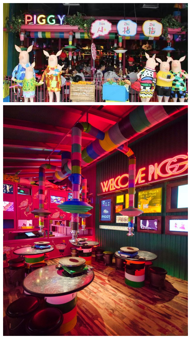 57度湘旗下的小豬豬烤肉可算得上是顏值與內(nèi)涵并存的一大代表了。品牌創(chuàng)立之初就明確了定位,牢牢鎖定年輕消費者,尤其是女性消費人群,因此,萌趣的小豬卡通形象加上全粉的裝修,絕對能令粉色控和卡通控的妹子們尖叫不已,拍照合影也是根本停不下來。