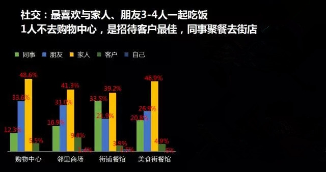 1、無論哪種商圈,最喜歡與家人、朋友2-4人一起吃飯,再次說明餐飲的本質(zhì)是社交;