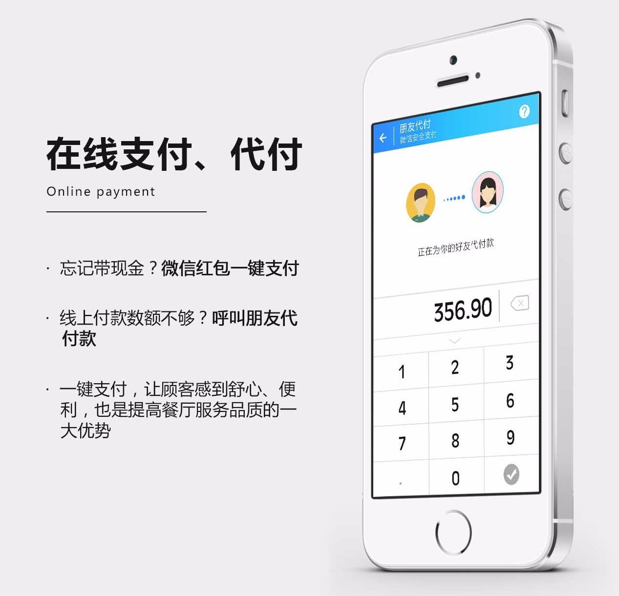 3、服務(wù)員無(wú)需全程跟單結(jié)賬,顧客在線支付,減少人工成本;
