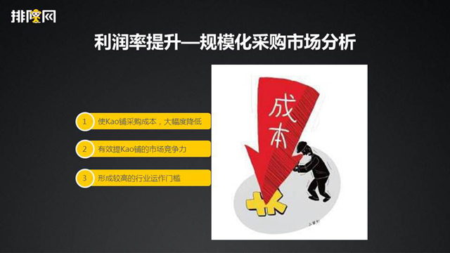 通過(guò)規(guī)?;少?gòu)來(lái)去降低成本。KAO鋪目前的單量是一天四到五萬(wàn)單,月流水四千萬(wàn)左右。主要是通過(guò)規(guī)模化的采購(gòu)降低我們的成本,這樣就能拉高行業(yè)里的競(jìng)爭(zhēng)門檻,讓從業(yè)者可以更好地跟我們合作,而且讓競(jìng)爭(zhēng)者不容易追上我們。