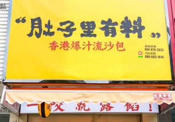 有家早點(diǎn)店叫肚子里有料,門口的大標(biāo)語(yǔ)就是一咬就露餡。這樣簡(jiǎn)潔明了,但是卻告訴了顧客他們的產(chǎn)品賣點(diǎn)是什么。