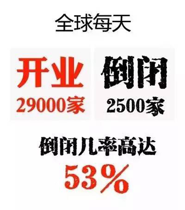 前段時間在網(wǎng)上看到一組驚人的數(shù)據(jù),盡管全球每天有超29000家企業(yè)開張,但同時,每天有大約2500多家企業(yè)倒閉,倒閉幾率高達53%