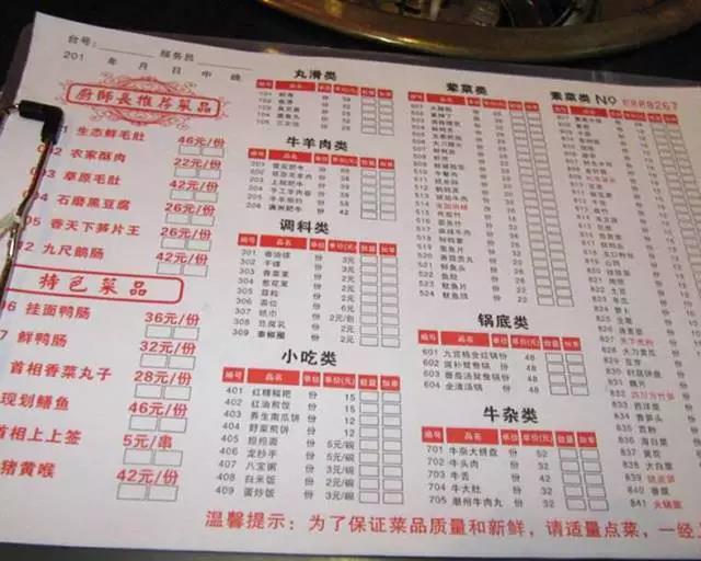 而且菜品的排序傾向于打散,而不以“高——低”,或者“低——高”的順序去排列。因為太有秩序的排列,往往會提醒最高的菜品價格太高,這就會讓部分食客總挑便宜的點。