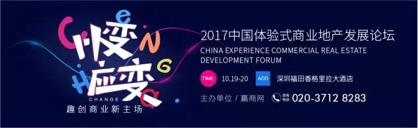中國(guó)體驗(yàn)商業(yè)地產(chǎn)與零售連鎖行業(yè)中規(guī)模宏大、最具品牌價(jià)值和影響力的行業(yè)年度盛典,隆重啟動(dòng)在即! 2017中國(guó)體驗(yàn)式商業(yè)地產(chǎn)發(fā)展論壇將在10月19-20日深圳福田香格里拉大酒店舉行,以“以變應(yīng)變,趣創(chuàng)商業(yè)新主場(chǎng)”為大主題,這場(chǎng)體驗(yàn)式商業(yè)的行業(yè)大爬梯有什么陣容?我們一起來(lái)揭秘!