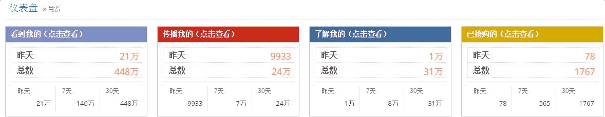 全部實名注冊的真實用戶,免費提供直觀有效的后臺數(shù)據(jù)統(tǒng)計,讓你清晰的知道有多少人,在什么時間,在什么位置是看到你、是了解你,還是主動傳播你。