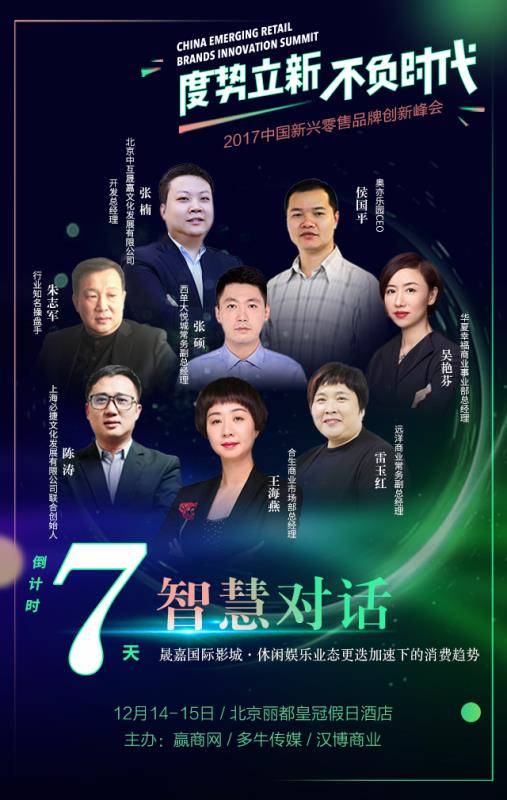 “2017中國新興零售品牌創(chuàng)新峰會(huì)”由中國商業(yè)地產(chǎn)互聯(lián)網(wǎng)綜合服務(wù)商——贏商網(wǎng),多牛傳媒以及漢博商業(yè)發(fā)起主辦,以“度勢立新,不負(fù)時(shí)代”為主題,將于12月14-15日在北京麗都皇冠假日酒店隆重舉行。