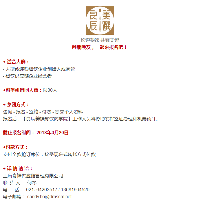 【良辰美饌】中國(guó)餐飲精益管理美國(guó)高端研修團(tuán)召集令專欄