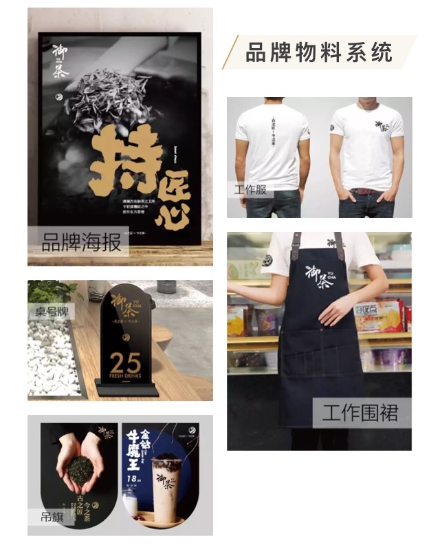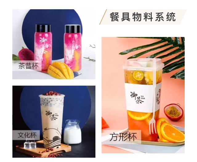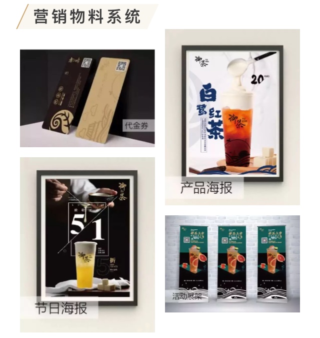 御茶的視覺形象系統(tǒng)非常齊全且實用,從產(chǎn)品的餐具到裝飾門店的海報物料,再到營銷用的運營海報物料等等一應俱全,方便快速立店,也能滿足品牌長期盈利的需求。