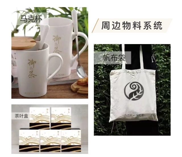 設計元素采用極具東方韻味的圓+水紋+太極以及品牌屬性茶葉這四大元素作為設計原型進行變形重組,突出御茶健康活力的特性,同時也象征御茶品牌生生不息。