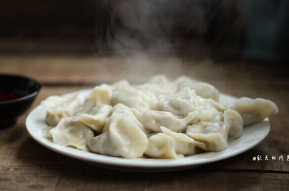 9. 下鍋煮熟,小碗里加生抽,醋,香油,再放入多多的油潑辣椒,蘸著碗汁,開吃吧