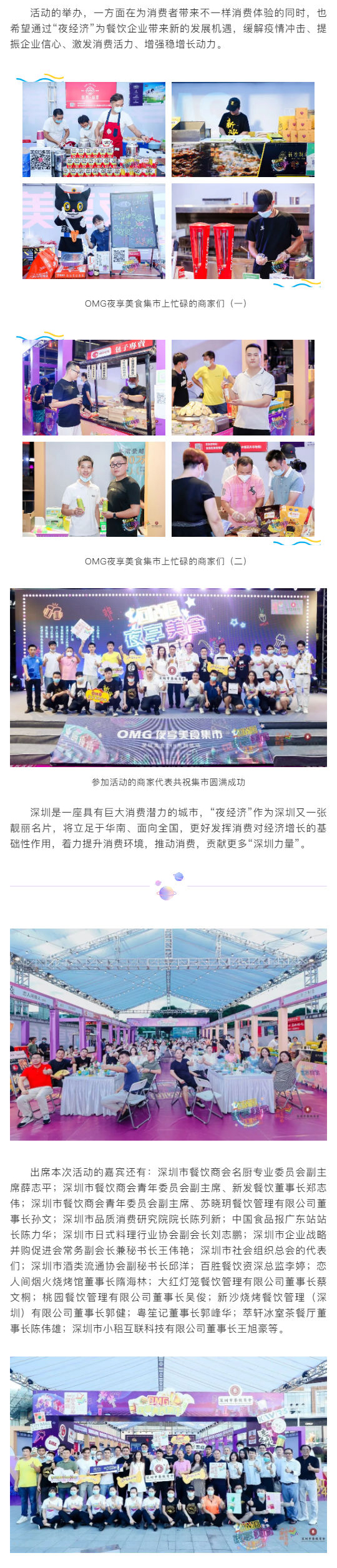 8月14日晚,由深圳市商務(wù)局主辦,深圳市餐飲商會(huì)承辦,新城市廣場、深圳市日式料理行業(yè)協(xié)會(huì)、深圳市綠色食品發(fā)展促進(jìn)會(huì)、惠吃臻選、雪堡精釀啤酒、戀人間煙火燒烤、科衛(wèi)機(jī)器人聯(lián)合協(xié)辦的深圳美食24H(TWENTYFOUR)”系列活動(dòng)之OMG夜享美食集市在新城市廣場正式拉開帷幕。