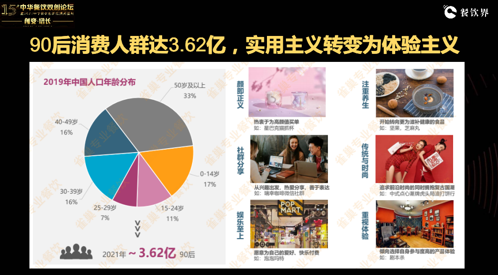 據(jù)相關(guān)數(shù)據(jù)調(diào)查顯示,90后消費人群達3.62億,而這類人群已經(jīng)成為當(dāng)下的主流消費人群。我們也通過洞察與研究得知,90后人群有6大明顯的標(biāo)簽:顏值正義、社群分享、娛樂至上、注重養(yǎng)生、傳統(tǒng)與時尚、注重體驗。所以,過往70-80注重的實用主義,慢慢轉(zhuǎn)變?yōu)?/span>90后的體驗主義。
