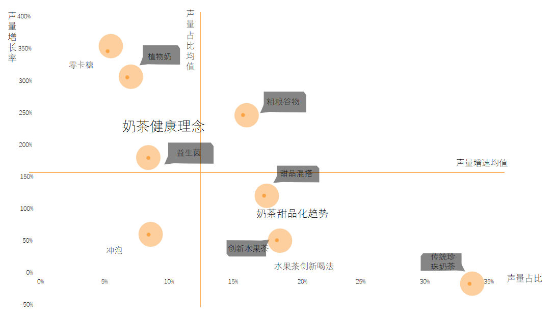 在追求健康的消費趨勢之下,茶飲行業(yè)不斷推陳出新,推出了水果茶等各類健康茶飲,推動了奶茶行業(yè)升級。傳統(tǒng)經(jīng)典的珍珠奶茶仍有大量受眾喜歡,但增長率已低于市場均值。根據(jù)時趣洞察引擎的行業(yè)分析報告,具備健康理念的奶茶正大受歡迎。