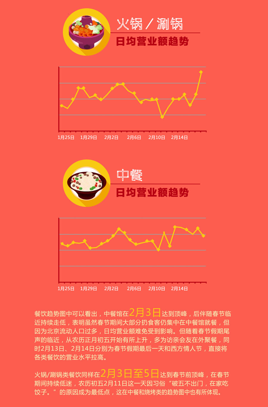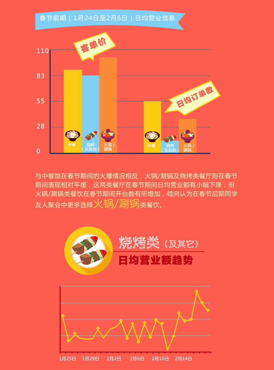 你能想象的到嗎?春節(jié)期間客單價最高的是中餐;燒烤熱銷品中肉占絕對主流;火鍋熱銷品中兒時的味道——北冰洋汽水拔得頭籌,大家是如此的懷舊。更多詳細內(nèi)容,請看本期吃貨大數(shù)據(jù)。