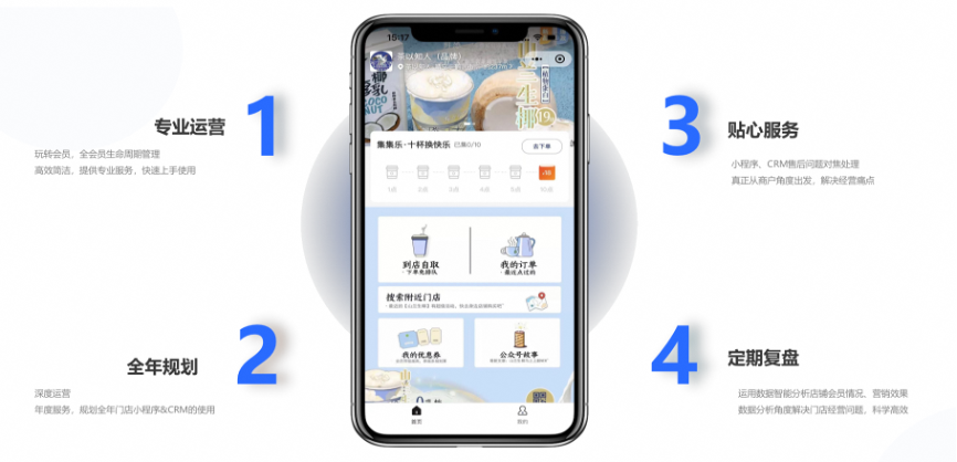 簡而言之,就是能手把手的帶領門店執(zhí)行一次完整的、全流程化的營銷活動,同時配置一周內7*12小時的優(yōu)先服務,會有專人及時響應小程序和會員運營系統(tǒng)的使用問題。