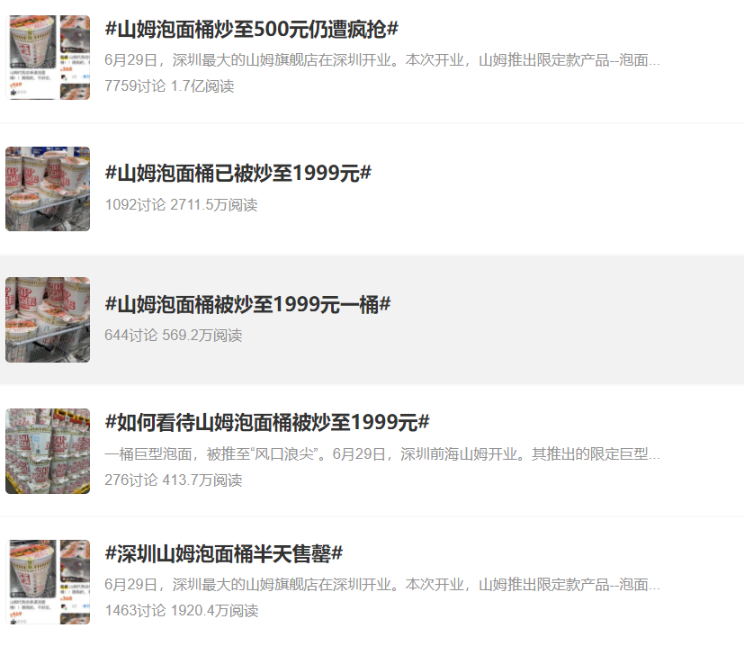 那么,在本次“山姆泡面桶”事件中,推動其登上熱搜的關(guān)鍵要素是什么?