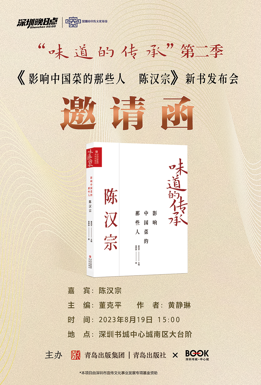 《影響中國(guó)菜的那些人——陳漢宗》新書發(fā)布會(huì)將于深圳書城中心城舉行專欄