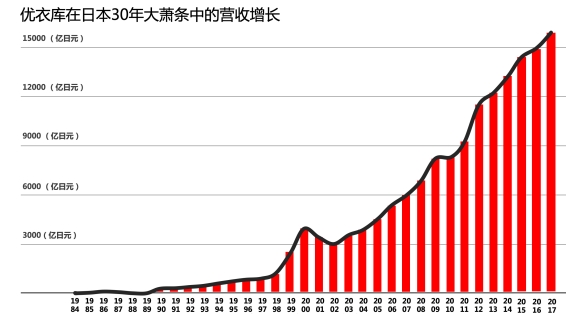 量販零食的成功是有跡可循的,它實際上是在零食賽道中,走出了一條優(yōu)衣庫式的道路。上世紀(jì)90年代,日本經(jīng)濟(jì)泡沫破裂。幾乎所有企業(yè)一下子跌入谷底,只有兩個行業(yè)在快速發(fā)展。一個是百元店,另一個就是高性價比的服裝店,以優(yōu)衣庫為典型案例。