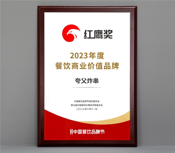 夸父炸串獲“2023年度餐飲商業(yè)價值品牌” 高坪效促萬店潛力迸發(fā)專欄