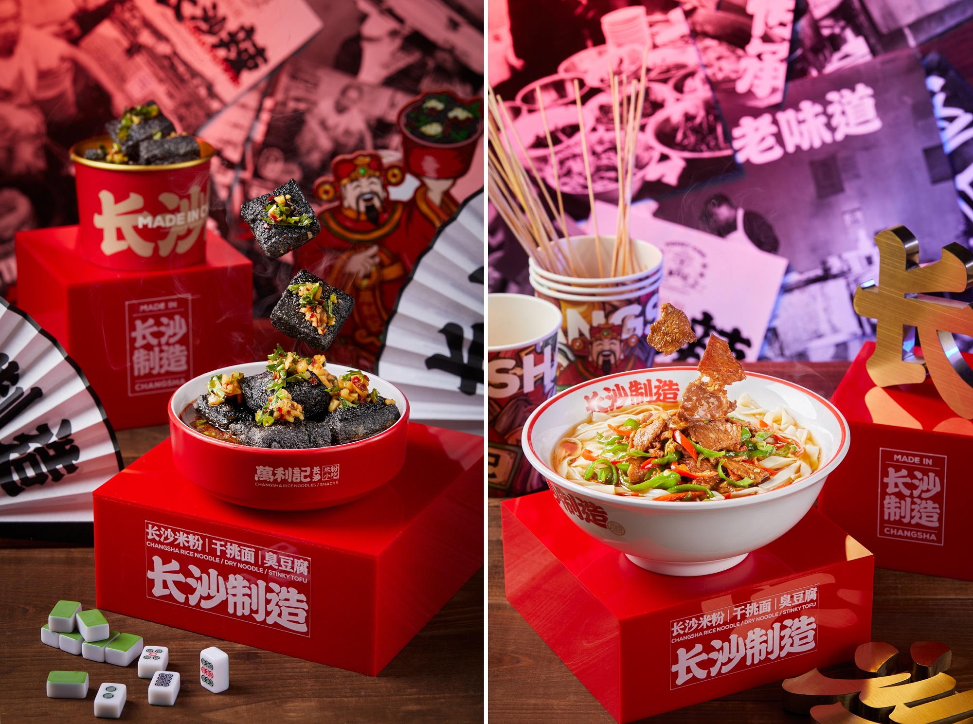 長沙米粉小吃作為傳統(tǒng)中餐的老品類,長期處于“有品類無品牌”的階段,針對該現(xiàn)象,萬利記對品牌發(fā)起了一系列的品牌化動作,率先搶占長沙米粉品牌化的紅利。萬利記定位于購物中心門店模式,開創(chuàng)了長沙米粉進入購物中心規(guī)模化經(jīng)營的先河,推動長沙米粉這一傳統(tǒng)品類以購物中心為“背景板”實現(xiàn)時尚蛻變。