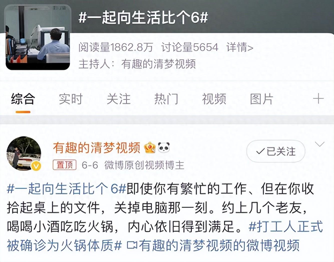 二是“雙話題”,在《向生活比個(gè)6》堅(jiān)持“日更”的同時(shí),#向生活比個(gè)6#、#八合里66牛肉火鍋節(jié)#雙話題在微博、抖音等社交平臺(tái)上同期推進(jìn),吸引網(wǎng)友互動(dòng)。