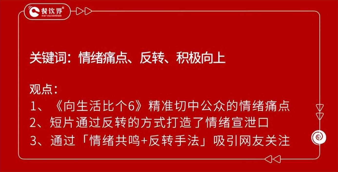 內(nèi)容決定了短片的“起點(diǎn)”,傳播則決定了短片的“終點(diǎn)”,如何傳播也決定著公益短片營銷的成敗。在餐飲界(canyinj.com)看來,《向生活比個(gè)6》在傳播中有兩大動(dòng)作值得借鑒。