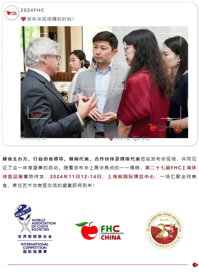 第二十七屆FHC上海環(huán)球食品展暨第二十五屆FHC中國(guó)國(guó)際烹飪藝術(shù)比賽發(fā)布會(huì),于2024年7月9日在上海艾迪遜酒店召開。