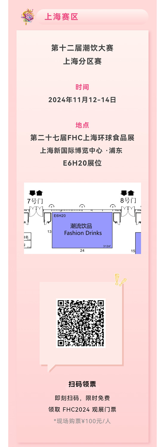 潮飲大賽~賽程即將過半,第五站:上海分區(qū)賽,將于11月12-14日與FHC上海環(huán)球食品展同期舉辦,報(bào)名通道已開啟!