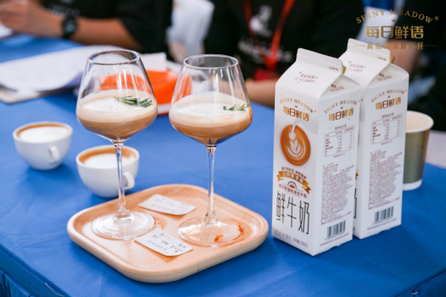 比賽現(xiàn)場選手使用每日鮮語大師尊享版鮮牛奶制作咖啡