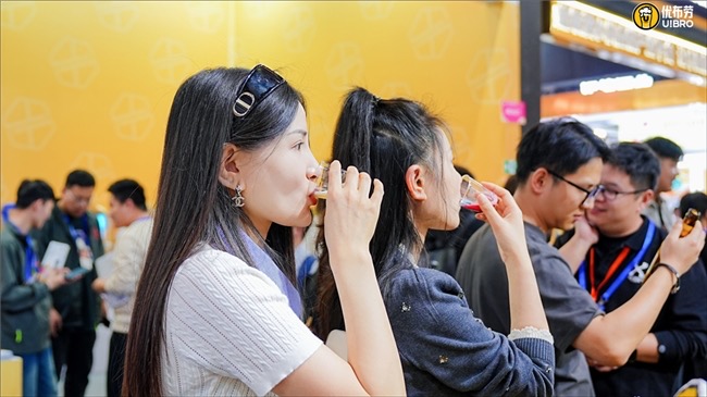 女性消費者來優(yōu)布勞展臺免費品嘗精釀啤酒