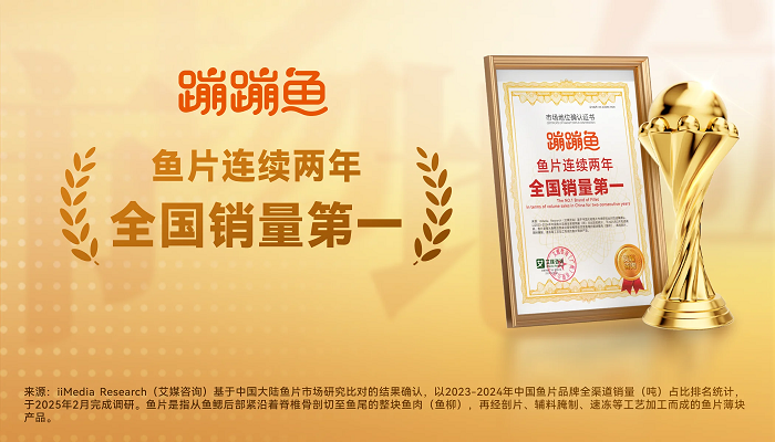 2025年2月,蹦蹦魚獲全球新經(jīng)濟產(chǎn)業(yè)第三方數(shù)據(jù)挖掘和分析機構(gòu)iiMedia Research(艾媒咨詢)授予的“魚片連續(xù)兩年全國銷量第一”市場地位確認。