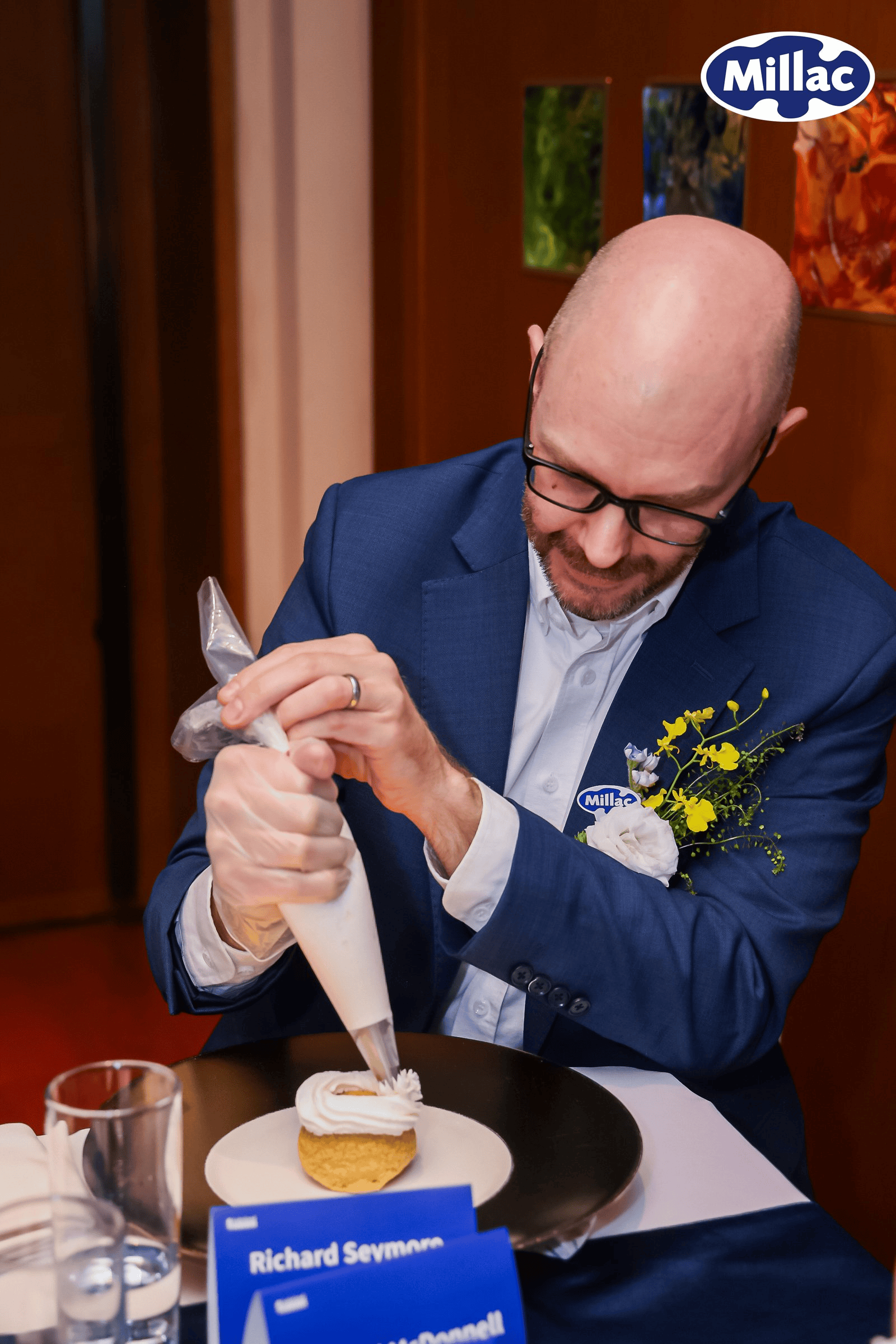 乳制品行業(yè)專家現(xiàn)場解讀全球與中國市場的乳制品消費趨勢與行業(yè)發(fā)展,幫助嘉賓更深入了解當前乳品行業(yè)的機遇與挑戰(zhàn)。隨后,知名美食博主魚菲帶領現(xiàn)場嘉賓親手制作奶油泡芙,現(xiàn)場體驗金米勒卓越的打發(fā)性與細膩質地,在輕松愉悅的互動中,進一步展現(xiàn)金米勒在操作便利性和適配廣度上的獨特優(yōu)勢。